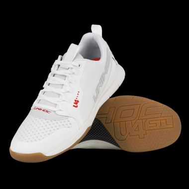 Der U4 Plus Floorballschuh wurde nochmals überarbeitet. Ein leichter Performance-Schuh, der speziell für Floorball entwickelt wurde. Er erfüllt sämtliche Wünsche bezüglich Explosivität und Schnelligkeit. Die obere Konstruktion besteht aus atmungsaktivem Mesh für zusätzlichen Komfort und Kühlung, und in Kombination mit den bedruckten Hotmelt-Bereichen ergibt es einen sehr modernen Hallensportschuh mit optimierter Passform. Der unihoc U4 Plus konstruiert für höchste Ansprüche - Geringes Gewicht, verstärkter Zehenbereich, hervorragende mediale und laterale Unterstützung sowie high-end performance SUPtracton-Sohle für besten Halt auf allen Hallenböden!