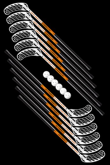Inhalt: 12 Schläger, 6 Bälle